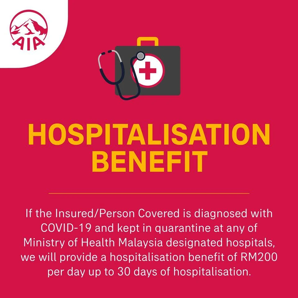 2) Manfaat elaun hospital RM200 sehari sehingga maksimum 30 hari, jika anda dikuarantin di hospital kerajaan.